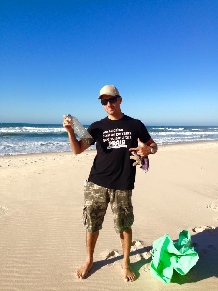 Garrafas de água de plástico poluem as nossas praias